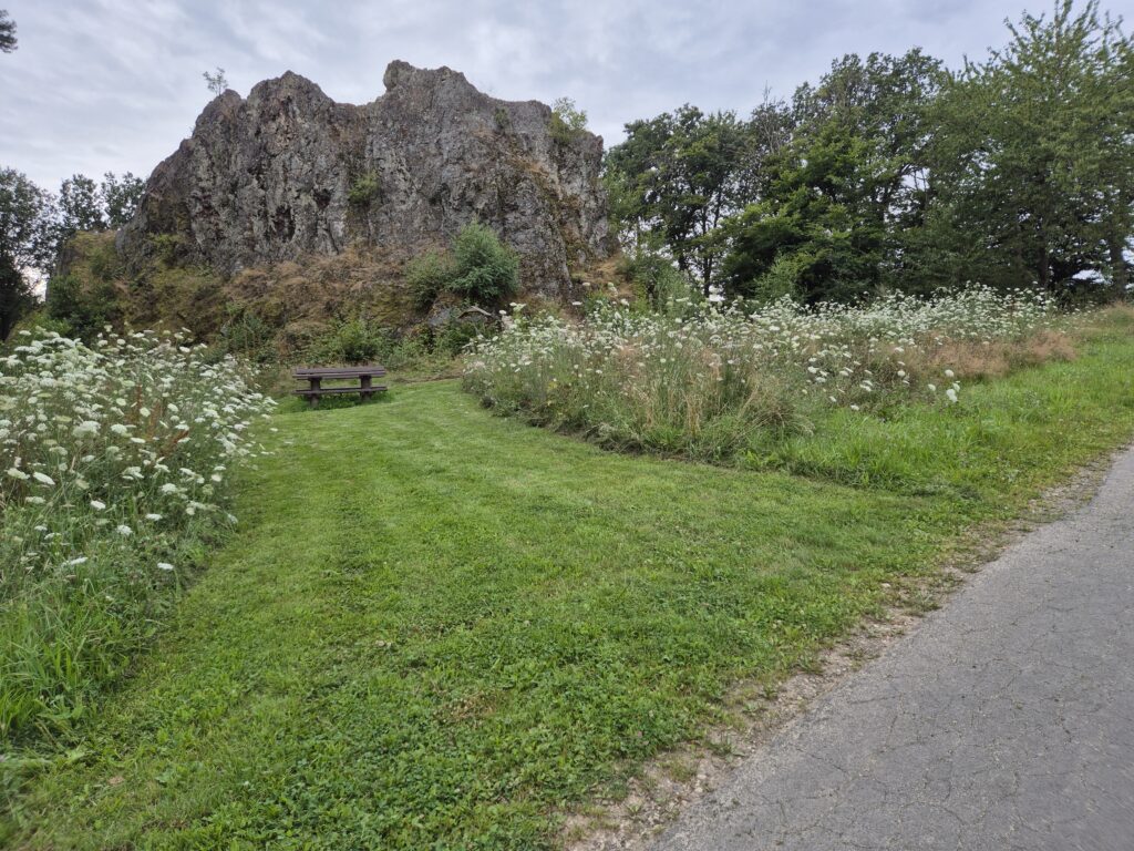 Dieser imposante Felsen ist Bestandteil des Quarzganges der sich von Hohenstein bei Oberems bis ins Dombachtal zieht.